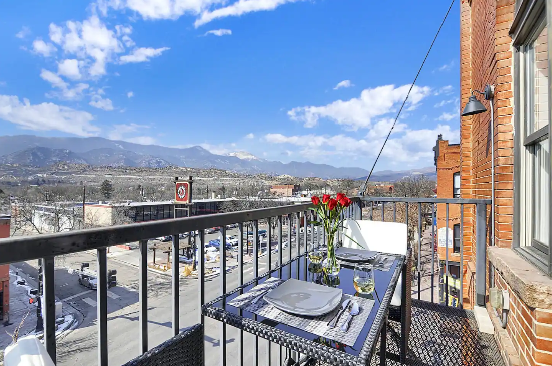 Experience the heart of one of Colorado Springs' most historic districts by staying in Old Colorado City. This third-floor loft, situated in a building dating back to 1901, immerses you in the area's vibrant past - the former home of lively saloons and brothels during the Pikes Peak Gold Rush. Step out to find eclectic galleries, boutiques, eateries, and bars right at your doorstep. Enjoy stunning views from the balcony while reveling in the charm of the exposed brick walls, custom hardwood floors, and lofty 12-foot ceilings.