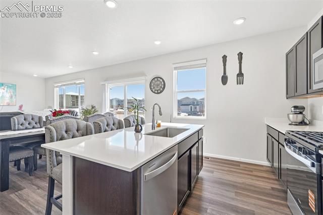 Discover this better-than-new, meticulously maintained two-story home in a welcoming Colorado Springs neighborhood. Built in 2019 by Meritage Homes, this home offers 4 bedrooms, 2.5 bathrooms, and 1,866 sq. ft. of thoughtfully designed living space on a .18-acre lot. Step into the bright great room with an open flow to the dining area and kitchen, perfect for family gatherings or entertaining. The kitchen features quartz countertops, stainless steel appliances, ample cabinetry, and a large center island. Upstairs, the primary suite includes a walk-in closet and private en-suite bath. Three additional bedrooms and an upstairs loft provide flexible space for a home office, den, or playroom. Convenient upstairs laundry adds everyday practicality. Outside, enjoy a fully fenced backyard, a two-car garage with extra storage, and easy access to Widefield Community Park and Ram Off-Road Park. Scenic rides and outdoor adventures await at Pikes Peak, Garden of the Gods, Pikes Peak Highway, and Gold Camp Road. This home is ideally located 15 minutes from Colorado Springs Airport, 20 minutes from Peterson Space Force Base, 25 minutes from Schriever Space Force Base, and 30 minutes from Fort Carson, with nearby hospitals and schools in Widefield School District 3. With energy-efficient features, a strong sense of community, and nearby parks and trails, this home delivers style, convenience, and the best bang for your buck.