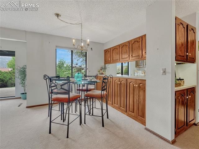 Exceptional value in Villa Sierra, this spacious ground-level three-bedroom condo offers comfort, flexibility, and some of the community’s most desirable outlooks. With 1,556 square feet, the well-designed floor plan allows for easy daily living while providing adaptable spaces to suit your lifestyle. The open living and dining areas extend to a private covered patio with storage, perfect for morning coffee or unwinding in the evening while enjoying mountain silhouettes and a glimpse of Garden of the Gods in the distance. Inside, a gas fireplace adds warmth and ambiance, while a beverage bar and in-unit laundry (washer and dryer included) add everyday convenience. The generous primary suite serves as a relaxing retreat with three closets and a private ensuite bath. Two additional bedrooms offer flexibility for guests, a home office, creative space, or fitness room, and share a centrally located bathroom. Storage is plentiful throughout, complemented by an oversized detached one-car garage. Residents of Villa Sierra enjoy a secure staffed entry, seasonal pool, tennis and pickleball courts, and beautifully maintained grounds. The home’s vintage character provides a wonderful opportunity to enjoy as-is or thoughtfully update over time. A rare ground-level offering with space, views, and exceptional potential.