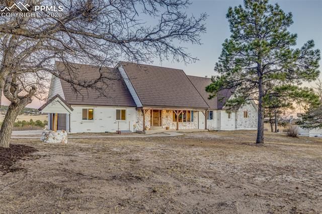 Rare opportunity to own 5.2 private acres in the highly sought-after Sun Hills area of North Colorado Springs with stunning Pikes Peak and Front Range views. This spacious 5,400+ sq ft home offers 4 bedrooms and 4 bathrooms with expansive living areas designed for both comfortable living and entertaining. Large windows bring in natural light while capturing the incredible Colorado scenery. The usable acreage, mature trees, and peaceful setting create the perfect Colorado lifestyle. The property also features a separate horse stalls/lean to, riding arena and a huge detached outbuilding garage that can hold all the toys you need. Truly ideal for horses, equipment, toys, or workshop space. Enjoy the best of both worlds—quiet country living just minutes from shopping, dining, and top-rated Academy District 20 schools. Properties with this much land, privacy, and views in this location rarely come available.