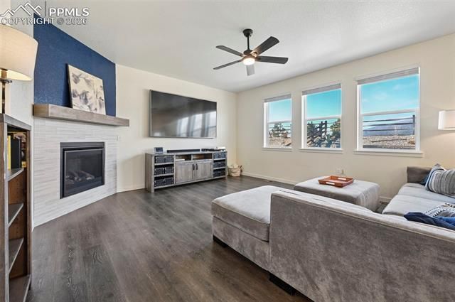 This beautifully maintained, move-in ready home in Monument offers incredible Front Range mountain views and thoughtful upgrades throughout. The property was expertly positioned and designed so that from the home and backyard your sightlines are drawn directly to the stunning mountain range, creating a peaceful and scenic backdrop for everyday living. Inside, the home features a bright open-concept floorplan anchored by a welcoming great room with a gas fireplace. Giant picture windows flood the space with natural light and perfectly frame the breathtaking mountain views, making the mountains the focal point of the home. The layout flows seamlessly into the dining and kitchen areas. Modern efficiency and convenience are built in with paid-off 6 kWh solar panels, Deako smart home light switches, and an 220V outlet for an EV charger in the garage. The home has been meticulously cared for and is truly turn-key. Offering 3,966 square feet, 6 bedrooms, and 4 bathrooms, the home provides plenty of space for both everyday living and hosting guests. Step outside to a fully landscaped backyard retreat designed for relaxation and entertaining. Enjoy evenings around the gas firepit, cook on the built-in BBQ, practice on your private putting green, and take in the unobstructed mountain views that make this property so special. Additional highlights include an oversized 2-car garage with polyaspartic garage floor coating. Located in desirable Monument, the home is close to lakes, hiking trails, and charming downtown Monument, where you can enjoy local shops, restaurants, and small-town strolling. With easy access to I-25, commuting to Colorado Springs or Denver is convenient while still enjoying the peaceful setting and natural beauty this area is known for. Combining thoughtful design, modern upgrades, and breathtaking Colorado scenery, this home offers a rare opportunity to enjoy comfort, efficiency, and unforgettable views.