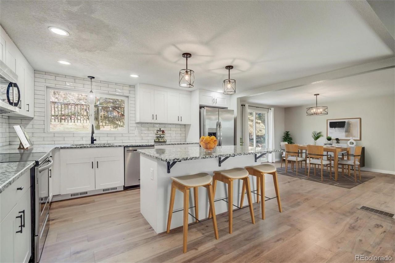 Welcome to your new oasis in the highly sought after Skyway neighborhood. This beautifully renovated 4-bedroom, 3-bathroom home effortlessly combines modern style with practical comfort. New vinyl windows! Step inside to discover a seamless fusion of elegance and functionality. The interior has been tastefully updated with new paint, trim, baseboard, and flooring throughout, creating an inviting atmosphere. The heart of the home features a bright and open living room, seamlessly flowing into a dining area and a sleek kitchen. Newly installed cabinets with granite countertops and stainless steel appliances. Gas fireplace in the living room adds warmth and charm. Escape to the outdoors through the dining rooms patio door, leading to a spacious concrete patio ideal for entertaining guests. Down the hall, youll find three comfortable bedrooms, including a master suite with its own private full bathroom boasting custom tile, a new vanity, and updated fixtures. A second full bathroom showcases the same tasteful upgrades. The lower level offers additional living space with a family room featuring another fireplace, as well as an extra bedroom and a stunning 3/4 bathroom. Completing this wonderful home is an attached 2-car garage, providing convenient parking and storage options. Conveniently located near Bear Creek Park, amenities and in a desirable neighborhood, this home offers the perfect blend of modern living and comfort. Dont miss out on the opportunity to make it yours ? schedule a showing today!