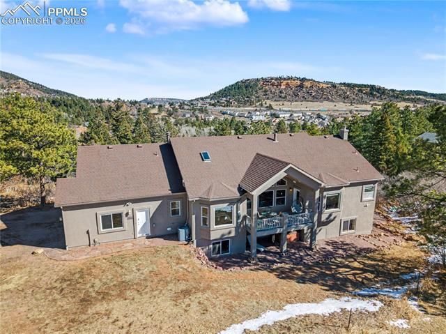 You’ll feel like you’re living in your own mountain oasis in this Palmer Lake home. Imagine waking each morning to a herd of deer wandering through the open pasture beyond your yard, with sweeping Front Range views in the distance. Set on a spacious 0.86-acre lot, this home blends the charm of Palmer Lake living with the comfort of modern construction. The thoughtfully designed ranch floor plan offers the ease of main-level living with the primary suite and laundry on the main floor. A finished walk-out basement with kitchenette expands the home’s possibilities with generous space for guests, entertaining, or multi-generational living. Take in the views toward town from the covered front porch, where you can spot the historic Palmer Lake Star during the holidays and the Fourth of July fireworks over the lake. Step inside to soaring vaulted ceilings and an inviting, light-filled living space. The room just off the entry offers incredible flexibility and could be used for a formal dining room, sitting room, library, or listening lounge. The kitchen features hardwood floors, granite countertops, crisp white cabinetry, and plenty of eat-in dining space. Upstairs, a cozy loft filled with natural light makes a perfect hobby room, craft space, or playroom. The spacious main-level primary suite includes a spa-like bathroom with walk-in shower and large jetted tub. Two additional bedrooms and a full guest bath complete the main floor. Downstairs, the walk-out basement offers newer LVP flooring, a wood-burning stove, kitchenette with full refrigerator, two generous bedrooms, another bathroom, and a rec room with unfinished space ideal for a workshop and storage. With limitless outdoor recreation—hiking, biking, fishing, kayaking, and more—plus beloved community events throughout the year, life in Palmer Lake is something special. Homes like this rarely become available—don’t miss your chance to see it and call it yours!