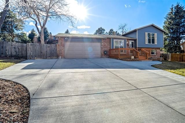Welcome to in the desirable Deliverance neighborhood of Colorado Springs. This move in ready, super clean tri level home has been lovingly maintained by the same owners for 24 years and showcases true pride of ownership throughout. Situated on an oversized 0.28 acre corner lot just minutes from Cottonwood Creek Park, miles of walking and biking trails, sports fields, playgrounds, and open green space, the location offers both convenience and outdoor lifestyle. Inside you will find 3 bedrooms and 2 updated bathrooms with LVP flooring throughout and no carpet. The main level features a beautifully updated kitchen with brand new cabinets, sink, countertops, tile flooring, and a walk out to the backyard. The open and airy layout creates great flow between the kitchen and living spaces, making the home feel bright and inviting. The lower level offers a cozy wood burning fireplace and a spacious second living area. Recent upgrades include a newly installed concrete driveway, fresh interior paint, updated lighting throughout, insulated garage door, updated siding, and a 50 gallon water heater. A freshly painted front deck adds charm and curb appeal, while the backyard features a large concrete patio area, storage shed, dog kennel, and room for RV parking. No HOA. Located near schools, shopping, parks, and quick access to Dublin Boulevard and Union Boulevard, this home is a rare opportunity in an established Colorado Springs neighborhood.