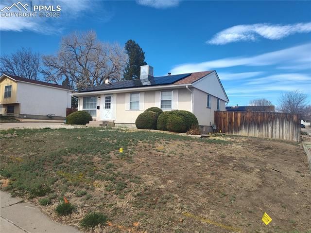 Welcome home! This beautifully maintained ranch style property is a must see. Located in the established Belmont neighborhood, this home offers plenty of space for the whole family with 3 bedrooms, 2 bathrooms, and an oversized two car garage. On the main level, you’ll enjoy a bright formal living room filled with natural light, along with a spacious eat-in kitchen featuring white appliances, ample cabinetry, and several standout storage features—including a lazy Susan and dedicated cookie-sheet cabinets. This level also includes a large primary bedroom and a second bedroom, both offering double closets. The full bathroom is thoughtfully designed with a convenient pass-through to the back of the home, providing easy access to the kitchen or backyard. In the basement you will find a huge family/game room complete with a cozy wood-burning stove—perfect for chilly winter evenings. You’ll also find a third bedroom and an enormous laundry room that offers exceptional storage potential, plus additional storage space under the stairs. The washer and dryer are included. Outside, the fully fenced backyard features a dedicated dog run and a double gate for easy access. The expansive covered patio (18' x 20') is ideal for entertaining family and friends on warm summer days. The oversized driveway can accommodate six or more additional vehicles. Situated on a large corner lot, this home is just minutes from CSU-Pueblo and I-25, and within walking distance of the local high school. This home is a must see! Home is being sold with existing solar panels. Buyer will be required to assume the current solar loan.