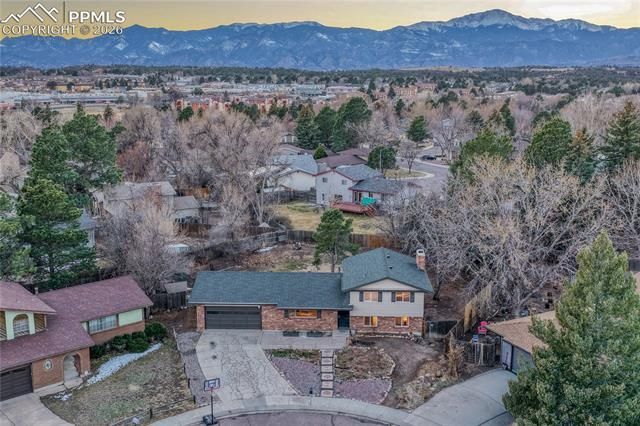 Can you imagine your new home, tucked into The Village Seven Neighborhood with its Pikes Peak Views & mature trees lining the streets as you walk to Village Green Park (a few blocks west) or Carver Park (a few blocks east) and Penrose Park, ½ mile south? Fido-friendly parks, walking trails, baseball fields, picnic tables & playgrounds surround your neighborhood. One and a half miles from your front door is the Palmer Park Trailhead, a 737-acre wildlife preserve offering hiking, biking & sports fields on a mesa overlooking the city. This home is tucked into a quiet cul-de-sac. It’s a wonderful “Extra” away from the neighborhood street, kiddos can ride their bikes, shoot hoops, or set up lemonade stands! This roomy, privacy-fenced backyard, has mature trees & provides so many options! The covered concrete patio provides enough room for Alfresco dining, practicing your grill skills, enjoying Fido & kiddos romping about, or a quiet end to your day with a glass of vino. This home has been freshly painted inside & out, it has new carpet, & Real Hardwood Floors that were refinished this month! The hardwood is on the entire main floor (except for the kitchen & entry way, which is tile). The stairs to the upper level & lower are wood, as are all the upstairs bedrooms! It has a new shower in the lower-level bathroom. A wood-burning fireplace/stove is a cozy extra and can be seen & enjoyed from the kitchen level. This family room level walks out to the big back yard, has an additional bedroom, a bathroom, and the laundry room.Fun Fact: Just off the covered patio is an outdoor bird cage, just in case you’ve got a birdy buddy who loves being outdoors in the summer!This home has stainless steel appliances , an updated kitchen, and the clothes washer & dryer stay!The extensive/expensive list of updates and their costs will be available on the home’s flyer when you “Come Take a Look Inside!” Make sure to watch the walkthrough video- you’ll see the Floor Plans on the site as well.