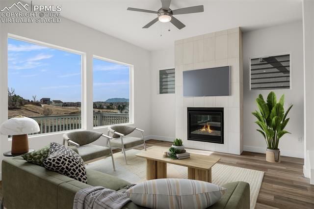 This stylish new 4-bedroom, 3.5-bath home at Trailside at Cottonwood Creek is designed to make coming home the best part of your day. Set against breathtaking mountain views, the private deck and walkout basement create seamless indoor-outdoor living with nature right outside your door. The main level features airy 10-foot ceilings, a cozy fireplace, and refined finishes throughout the open-concept entertaining space, perfect for gathering with family and friends. Upstairs, three spacious bedrooms offer restful privacy, including a luxurious Owner’s Retreat with a spa-inspired Super Shower. The walkout basement provides flexible living with a secondary recreation room, a fourth guest space, and direct access to outdoor beauty. Located steps from scenic hiking trails, this home offers a rare blend of style, comfort, and Colorado adventure.