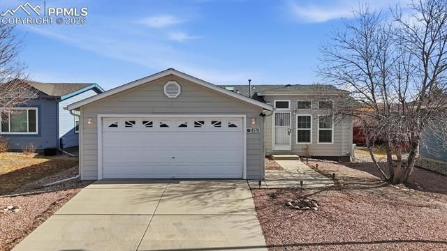 Come explore impressive, low-maintenance living in this beautifully maintained 3-bedroom, 2-bath manufactured home in the popular planned community of Chateau at Antelope Ridge. With outstanding curb appeal, the xeriscaped lot and storm-door entry set the tone for easy, low-maintenance living from the moment you arrive. Inside, you’ll find 1,080 square feet of thoughtfully designed living space, enhanced by central air and heat for year-round comfort. Abundant windows flood the home with natural light, while window blinds throughout provide privacy and style. The spacious living room features plush, neutral carpeting and an inviting layout, perfect for entertaining family and friends. The living area flows seamlessly into the eat-in kitchen, complete with durable vinyl flooring, ample wood cabinetry, and generous counter space for storage and meal prep. A full appliance package includes a smooth-top range oven, microwave, dishwasher, and refrigerator. Step outside to the backyard deck, an ideal spot for outdoor dining, morning coffee, or relaxing evenings. The primary bedroom is a comfortable retreat with plush carpeting, a mirrored wardrobe closet, and an attached shower bathroom featuring a dual-sink vanity and enclosed shower. Two additional bedrooms share a full hall bathroom with vanity, mirror, and tub/shower combination, perfect for family, guests, or a home office. Two car attached garage with door opener. Fenced backyard that backs to open space for outdoor fun and relaxation. Residents of this community enjoy exceptional amenities, including a clubhouse, fitness center, swimming pool, playground, and a variety of planned activities throughout the year. Ideally located near schools and the Powers Corridor, you’ll appreciate easy access to shopping, dining, and entertainment, along with convenient proximity to Peterson Space Force Base. Move-in ready and full of charm, this delightful home is ready for you to call it home!