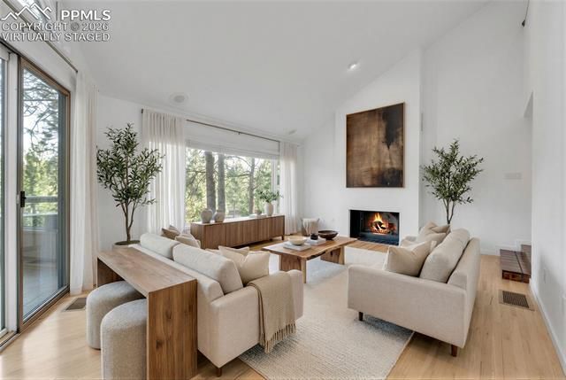 Welcome to this stunning contemporary custom-designed 5 bed (or 4+ office), 4-bath, 3,890 sq ft home, perfectly positioned for privacy and tranquility among towering Ponderosa pines. Breathtaking views from nearly every window showcase sweeping mountain, red rock, and Pike National Forest views, while vibrant sunsets paint the sky. Perched high on the lot, this light-filled home offers an open, airy layout ideal for entertaining. The spacious kitchen features hardwood floors, an oversized island with seating for six, a cooktop with a grill, a pantry, and a breakfast nook—just steps from an impressive 10' Four Seasons curved glass greenhouse. The kitchen, dining, and family rooms flow seamlessly onto a massive Brazilian redwood deck. With five decks and a patio, you’ll always find the perfect spot in the sun or shade. The main level boasts a family and living room—each with a fireplace, a private office, a formal dining room, and a powder bath. A captivating multi-level open spiral staircase showcases an incredible 80+ year old Elephant Foot Ponytail Palm, perfectly situated beneath an 8' diameter skylight that floods the space with natural light. The primary suite offers a wood-burning fireplace, two private decks & a spa-like five-piece bath with a soaking tub under a skylight. Two additional bedrooms and a dual-sink full bath complete the upper level. The walk-out lower level features a fourth bedroom, full bath, rec room, & wine storage. Recent upgrades include a new security system, fire mitigation, electrical panel, water heater, exterior paint, freshly paved driveway & secured mailbox. Ideally located near Perry Park Country Club, "Big D" Open Space, horse stables, hiking/biking trails & Douglas County’s Sandstone Ranch Open Space. Enjoy abundant wildlife, deer, turkeys, and colorful hummingbirds in this exceptional natural retreat! Secluded but not isolated, only 20 mins to Castle Rock & 40 mins to DTC or CO Springs.