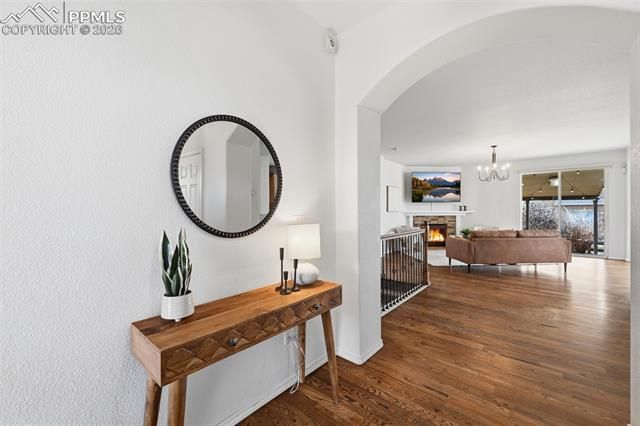 Charming Ranch Retreat in Barnstormers Landing — Where Comfort Meets Entertaining From the moment you arrive, this beautifully updated ranch home with a finished basement invites you to slow down and stay awhile. A generous covered front porch sets the tone — the perfect spot to savor your morning coffee as the sunrise paints the sky. Step inside to discover rich hardwood floors that flow seamlessly through an airy, open-concept living space crowned by soaring vaulted ceilings. The thoughtfully designed kitchen is a true entertainer's dream, featuring solid surface countertops, a walk-in pantry, a tall breakfast bar, and a full suite of newer stainless steel appliances— everything you need to host with ease. Retreat to the oversized primary suite, spacious enough to accommodate your full bedroom set with room to breathe. A spa-inspired five-piece bath connects directly to a generous walk-in closet, creating a private sanctuary you'll look forward to coming home to. A second main-level bedroom and a beautifully remodeled full bath round out the upper level. The backyard is where the magic happens. Step through the dining room or primary suite onto a large covered patio, then duck into the crown jewel of this property: a converted shed transformed into a fully finished British pub, complete with warm hanging lights and an atmosphere that makes every gathering unforgettable. Downstairs, the finished basement with all new carpet delivers incredible flexibility with a sprawling recreation room, three additional bedrooms, a full bath, and abundant storage — room to grow, play, and make your own. Notable Upgrades: New roof (2018) · Whole-house humidifier · Kinetico quad-tank water softener. New Carpet Mar 2026. New tile in bedroom & bath (May 2022) · Full bathroom remodel (Aug 2022) Perfectly positioned with quick access to Peterson SFB and Ft. Carson , Powers Blvd, I-25, and a wide range of dining and shopping options — this home truly has it all.