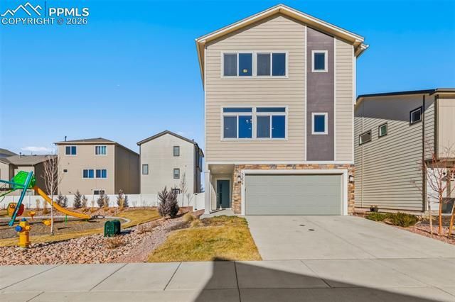 This home is a beautifully built three-story single-family Challenger home, built the end 2023, where modern design meets everyday comfort. With 1,724 square feet of thoughtfully planned living space, this home proves that style and functionality can absolutely get along. The open-concept family room, kitchen, and dining area is the heart of the home, perfect for hosting friends, keeping an eye on homework, or pretending you enjoy cooking elaborate meals. Clean modern finishes are balanced with warm touches. Upstairs, you’ll find three well-sized bedrooms and 2.5 bathrooms, offering flexibility for families, guests, or a home office (or two). The layout provides just the right amount of separation between living and sleeping spaces, because everyone appreciates a little privacy. Located in Colorado Springs, this home sits right next door to a playground, making outdoor fun just steps away—no packing snacks required. Whether you’re enjoying the neighborhood setting or relaxing inside your nearly new home, this property delivers comfort, convenience, and a bit of personality. Located just minutes from Peterson SFB and Ft. Carson, in the Powers corridor, this home has quick and easy access to restaurants, gas stations, the airport & shopping. Modern, move-in ready, and built for real life—this home is ready to welcome you.