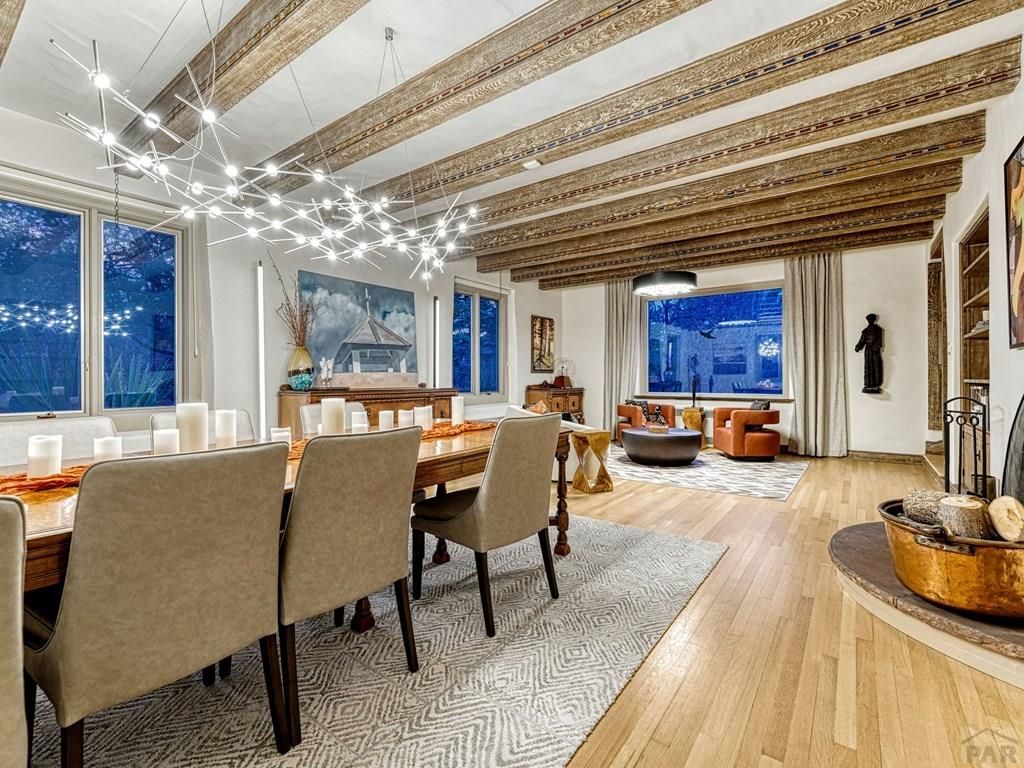 Introducing the Harold Florman House, a rare and authentic 1939 Pueblo Revival, one of the few true examples from the original 1900â??1940 era, gracefully set on nearly 2 acres in Aberdeen. A designated Pueblo Historical Landmark and featured on the Denver Botanic Gardens registry, this is a once-in-a-lifetime offering. Rich in character and craftsmanship, the home showcases original hardwood, terra cotta tile, and art deco laminate flooring, hand-painted tilework and murals, vitrolite accents, hand-carved wood details, kiva fireplace, vigas, and beamed ceilings. Formal and informal living spaces offer warmth and versatility throughout. The upper-level primary suite is a private retreat with ensuite, sitting area with kiva fireplace and built-ins, dressing space, and rooftop access with potential for a secluded outdoor oasis. The main level includes a grand entry, spacious living and dining areas, kitchen, three bedrooms, and 2.5 baths. The lower level features a family room, cantina-style wet bar, laundry, storage and garage. A separate casita with bath offers ideal guest or studio space. Outdoors, enjoy a magical setting with two natural springs, a year-round koi pond, meandering paths, bridges, and a vine-covered trellis with wood-burning fireplace. The only residential property in Aberdeen on 1+ acre, this sanctuary offers privacy, beauty, and stunning sunset views over the Arkansas River and Pikes Peak, with direct access to City Park. A true legacy property. Apply today.