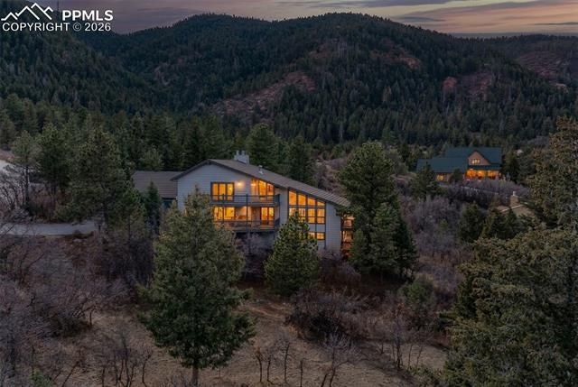 Set in the heart of Perry Park, this 4-bed, 4-bath home offers approx. 4,890 sqft and showcases ICONIC RED ROCK, DAWSON BUTTE, AND VALLEY VIEWS, abundant natural light, and multiple outdoor living spaces. Backs to undeveloped national forest land with open trail access. Only one owner! A welcoming foyer opens to the formal living room with a vaulted wood-beam ceiling, dramatic floor-to-ceiling windows, and sliding-door access to the wraparound composite deck—made for entertaining and viewing of the beautiful Perry Park red rock formations. The formal dining room features vaulted ceilings, chandelier, and picture windows with custom shutters framing the scenery. The updated kitchen offers wood flooring, vaulted beam ceiling, ceiling-height windows with switch-controlled sunshades, cherry cabinetry with crown molding, stainless steel appliances, granite countertops, a window-over-sink view, and breakfast nook with custom lighting. Just beyond, the family room warms up with a brick accent wall, wood stove, built-in bookcases, wet bar, and deck access to the hot tub and fenced yard. The main level also includes a laundry/mud room, bedroom, and full bath. Upstairs, the primary suite features French door entry, access to a partial wraparound composite deck balcony w/sweeping red rock views, dressing room w/2 closets & laundry chute, en-suite bath w/dual sinks & large walk-in shower. Two add'l bedrooms w/views & a full bath complete the upper level. The walk-out basement adds a bonus room, 2nd family room w/built-ins and stone-encased wood-burning fireplace, 3/4 bath, lower wraparound composite deck. Storage closets, & oversized garage. Nestled in the prestigious Perry Park Golf Course community, this setting offers more than golf—dining, social options, open space, trails, horse stables, all surrounded by iconic red rock scenery. Just 5 min to Sandstone Ranch Open Space, 20 min to Castle Rock, ~40 min to DTC or COSprings, it’s the perfect balance of privacy & convenience.