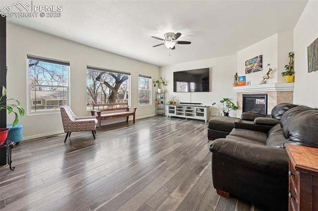 Welcome home to this beautifully appointed residence in the desirable Bristol subdivision of Old Colorado City, ideally located just west of the prestigious Old North End. Offering the perfect blend of timeless finishes, modern upgrades, and unbeatable convenience, this home delivers both lifestyle and location. From the moment you arrive, the classic stucco exterior and inviting curb appeal set the tone. Inside, rich hardwood floors span the main level, complemented by custom lighting and a cozy fireplace that anchors the living space. Large Cascade windows flood the home with natural light, creating a bright and welcoming atmosphere throughout. The kitchen is designed to impress, featuring 42-inch cabinetry, granite countertops throughout, stainless steel appliances, and ample prep and storage space. Whether hosting gatherings or enjoying a quiet evening at home, the open layout makes entertaining effortless. Upstairs, the spacious primary suite offers a private retreat with French door entry and a luxurious en-suite bath complete with travertine flooring and surrounds, plus an oversized shower wrapped in elegant travertine detail. All three bathrooms feature beautiful travertine finishes, adding a cohesive, spa-like feel. Ceiling fans and Nest temperature control provide year-round comfort and efficiency. Step outside to the upper deck and enjoy stunning downtown views—perfect for morning coffee or relaxing evenings under Colorado’s colorful skies. A two-car garage adds convenience and extra storage.