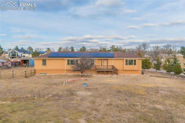 A slice of the country in the city — 1.57 acres with fantastic Pikes Peak and Front Range views! Plenty of room for all your “toys,” recreational vehicles, or work equipment — and you might enjoy a little more freedom in this special location, as all indicators suggest it is in unincorporated El Paso County. Quick and easy access to Woodmen Road and Interstate 25, with the South Gate entrance to the United States Air Force Academy just minutes away, as well as shopping for every want or need on nearby Nevada Avenue or Academy Boulevard. There is new carpet throughout the main level, along with new luxury vinyl plank flooring in the primary bathroom. The entire main level has been freshly painted, and the kitchen features brand-new slab granite countertops and backsplash. Check out what’s new within the last five years: main-level range/oven, refrigerator, and dishwasher; a “solar system on steroids” with 35 LG panels and two Tesla batteries; a 50-amp electrical panel; furnace and A/C; a tankless water heater; and a new pressurized leach field for the septic system. The roof has recently been inspected and comes with a five-year roof certification. The basement has the perfect multi-generational living configuration with a secondary suite (bedroom with ensuite full bath & walk in closet), a kitchenette (does not have an oven), a living room with an adjacent home office with French doors, a rec room/family room and a bonus work out room (25 x 14 "Other" room)!