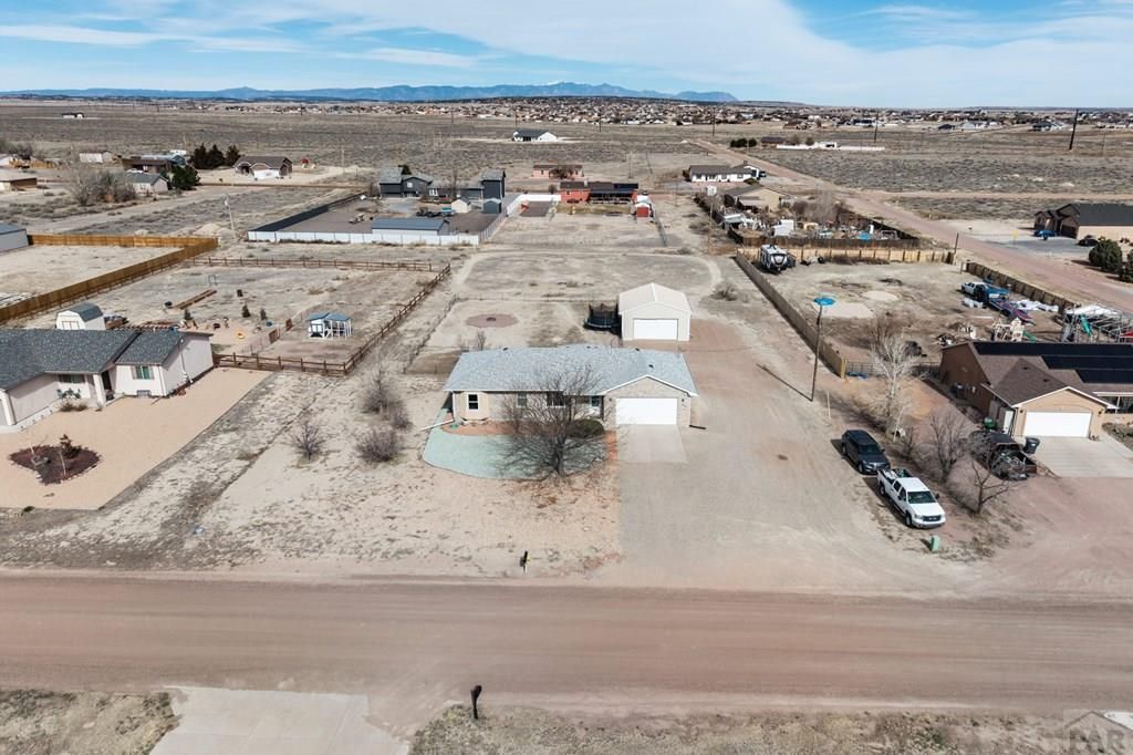 Spacious acerage living with mountain views! This 5-bedroom, 2-bathroom home in Pueblo West sits on 1.01 acres and offers a functional layout with plenty of room to live, work, and play. The main level features a comfortable primary suite with a private en-suite bathroom, along with two additional bedrooms and a full hallway bathroom. You'll also appreciate the convenient main-level laundry and mud room, perfect for keeping everyday life organized. Downstairs, the finished basement adds two more bedrooms and includes rough-ins for a future bathroom, giving you the opportunity to expand and add value. A radon mitigation system is already installed for added peace of mind. Step outside to enjoy the fenced backyard and wide-open space, ideal for pets, hobbies, or outdoor gatherings. The impressive 24x30 shop provides abundant room for vehicles, equipment, or projects. Take in beautiful views of Pikes Peak while still being conveniently located near schools and quick access to I-25, making commuting and daily errands easy. With space, functionality, and stunning Colorado views, this property offers the perfect blend of rural feel and everyday convenience.