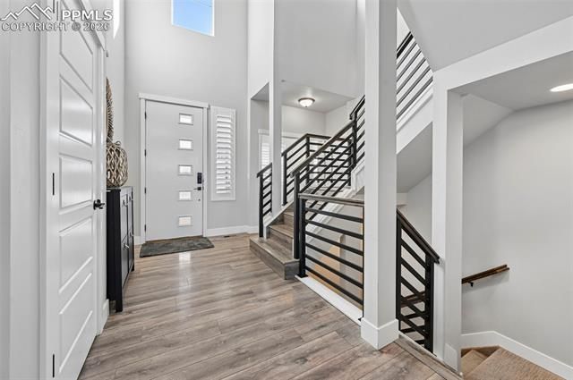 Set on a quiet cul-de-sac and backing to protected open space with sweeping mountain views, this exceptional Classic Homes “Hannah” offers over 4,000 square feet of beautifully designed living space with refined finishes and effortless functionality. A dramatic wall of windows in the great room frames the Front Range like living artwork, filling the home with natural light and creating a seamless connection to the outdoors. The open-concept main level is ideal for both entertaining and everyday living. The gourmet kitchen features quartz countertops, black stainless KitchenAid appliances, upgraded cabinetry, designer tile backsplash, and under-cabinet lighting, flowing easily into the dining and living areas. A striking mantel, hand-trowel texture, designer paint, upgraded trim, and premium flooring elevate the space. The main-level primary suite provides a private retreat with a spa-inspired bath featuring full-height tile, a frameless glass shower, quartz surfaces, upgraded fixtures, and a spacious walk-in closet. A dedicated study on the main level offers the perfect home office or flex space. Upstairs, three additional bedrooms surround a versatile loft suited for a second living area or media space. One bedroom includes a private en-suite bath, and the upper-level laundry adds daily convenience. The finished walkout basement with heightened ceilings includes two additional bedrooms, an upgraded bathroom, and a spacious recreation room with bar—perfect for entertaining or guests. Natural light pours in, with direct access to the backyard. Enjoy mountain views from the expanded deck or relax in the professionally landscaped backyard complete with a hot tub, custom gazebo, raised garden beds, mature plantings, and full fencing—all backing to open space for a peaceful setting. With over $100,000 in upgrades, this home delivers elevated Colorado living at its finest.